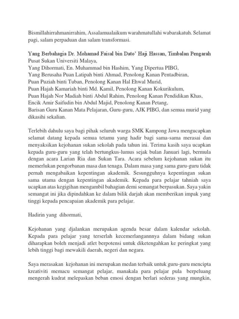Teks Ucapan Hari Sukan Negara 2018 By Da_Mireya67 30 Mar, 2022 Post a Comment Teks Ucapan Sukan Pengetua Pdf Teks Hari Sukan Negara Pdf Teks Ucapan Kejohanan Sukan Orang Asli Teks Ucapan Kj Hari Sukan Negara Share No comments for "Teks Ucapan Hari Sukan Negara 2018"