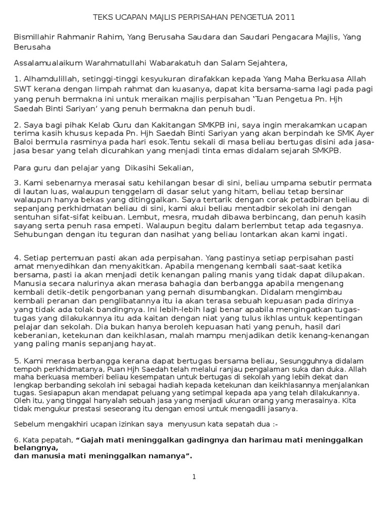 Teks Ucapan Majlis Perpisahan Pengetua Final Pdf